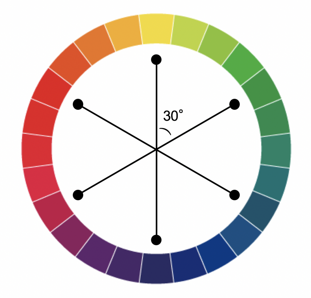 少し難易度は上がりますが、色相環から等間隔で色を拾うというテクニックもあります。