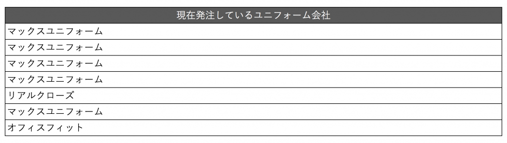 現在の発注先を聞く設問で「マックスユニフォーム」という回答が目立ちます。
